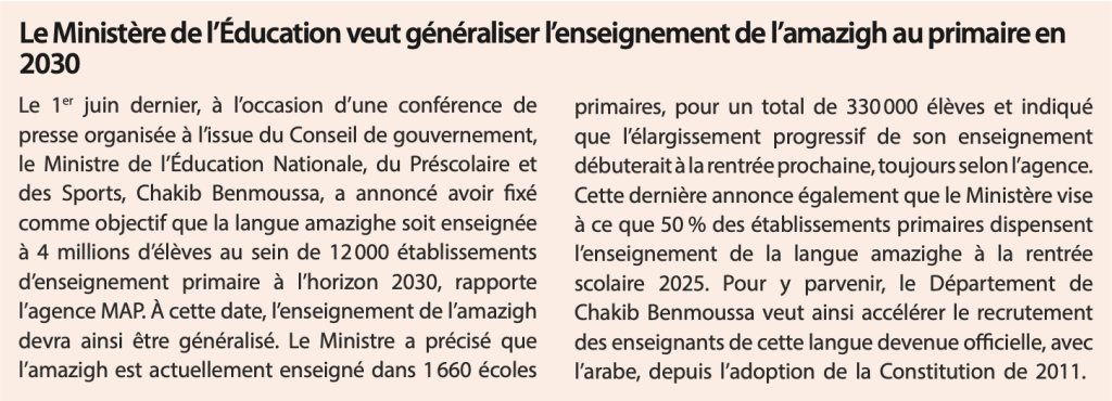 Mais sa place est aussi contestée, en particulier par une partie de la classe politique qui le voit comme un concurrent de l’arabe, comme l’ont montré les débats autour de la loi-cadre sur l’enseignement, ou encore par les tenants d’une place plus importante pour l’anglais.